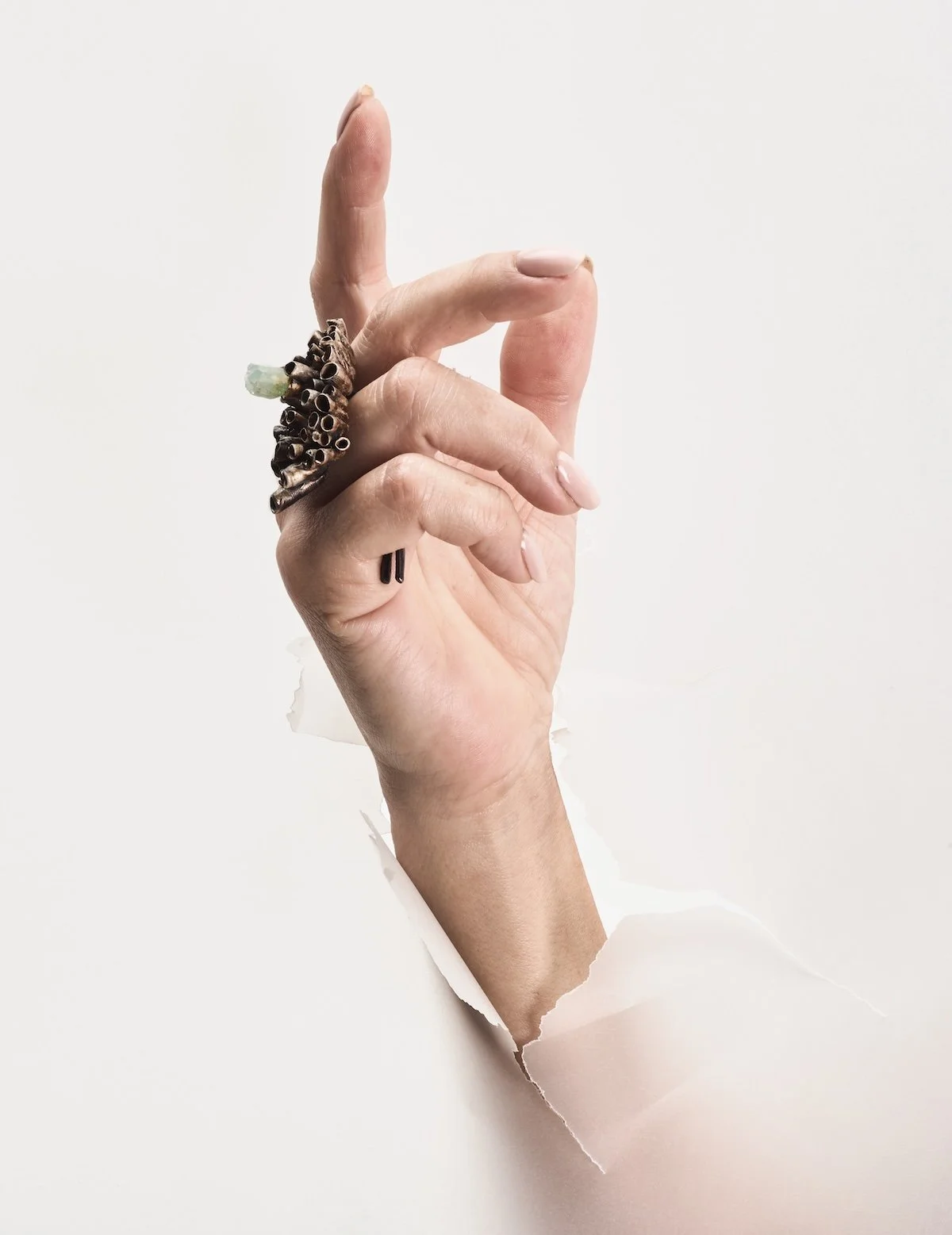 It is the invisible substance that inhabits the sky, the quintessence of light and breath. In ancient myth, it was the pure matter of the gods: a subtle bridge between the visible and the invisible, between what appears and what remains suspended. Aether is a celestial breath, an essence that unites matter and emotion, transforming each jewel into a fragment of the cosmos, where shadow embraces light and the void welcomes possibility.